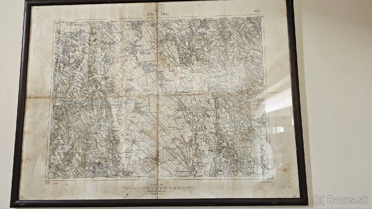 Predám Rakúsko- Uhorskú mapu v zasklenom ráme oblasti Léva és Salló čislo 4761 z roku 1917.