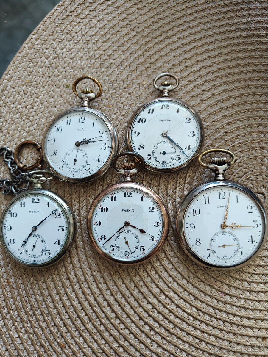 Predám starožitné strieborné vreckové hodinky, rôznych znaciek. Všetky hodinky sú funkčné. Priemer sú cca 5cm. Cena za všetky 360€