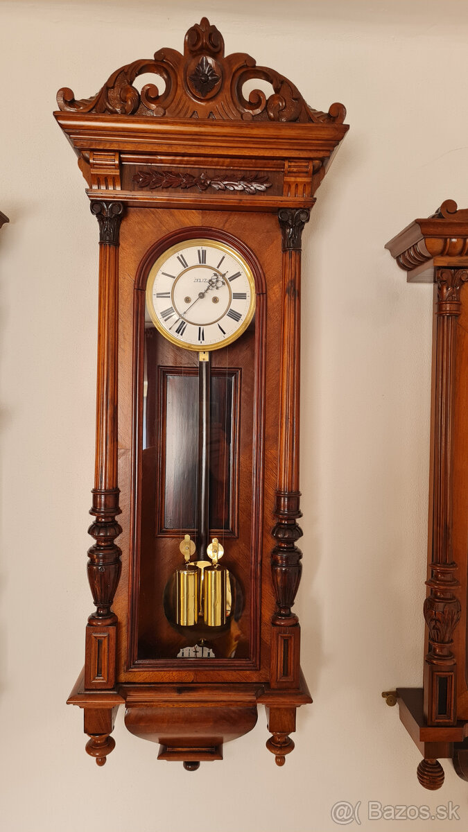 na predaj ojedinelý zberateľský kus, starožitné dvojzávažové hodiny od známeho pražského hodinára Augustína Želízka