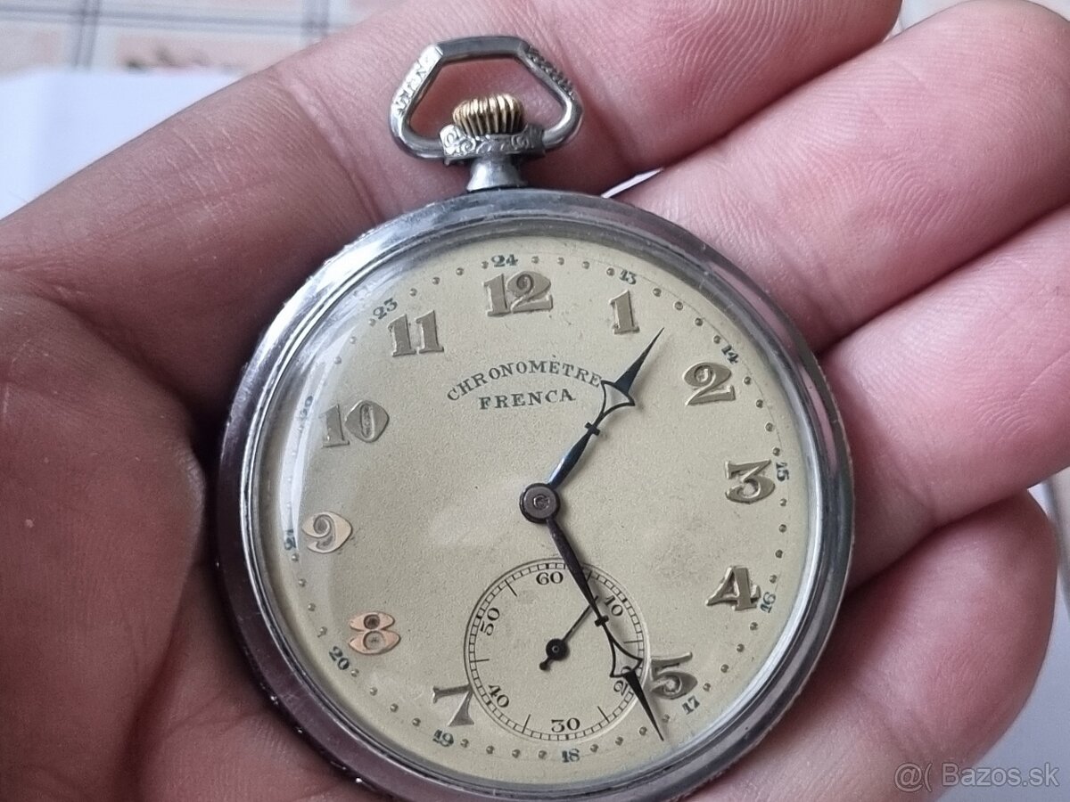 Art dekové vreckové hodinky,chronometre Frenca,priemer púzdra-49mm,hodinky sú plne funkčné.Na sms nereagujem.