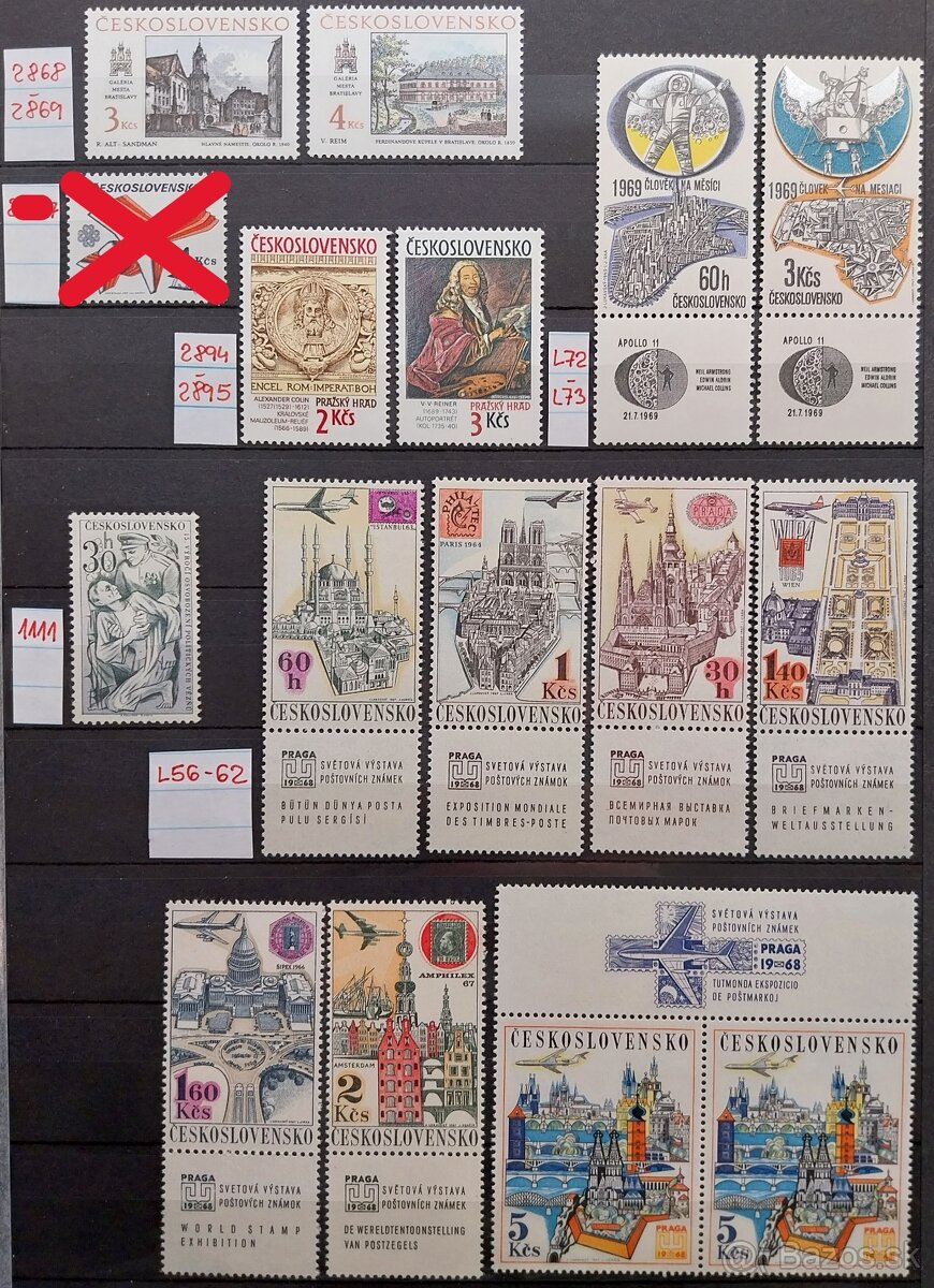 Predám československé známky, výborná kvalita (väčšina **), aj jednotlivo po sériach, kompletný zoznam známok podľa pofis čísel spolu s cenami, kvalitou a poznámkami pošlem v exceli mailom, plus poštovné, nevolať – kontakt len mailom, pozrite aj moje ďalšie inzeráty