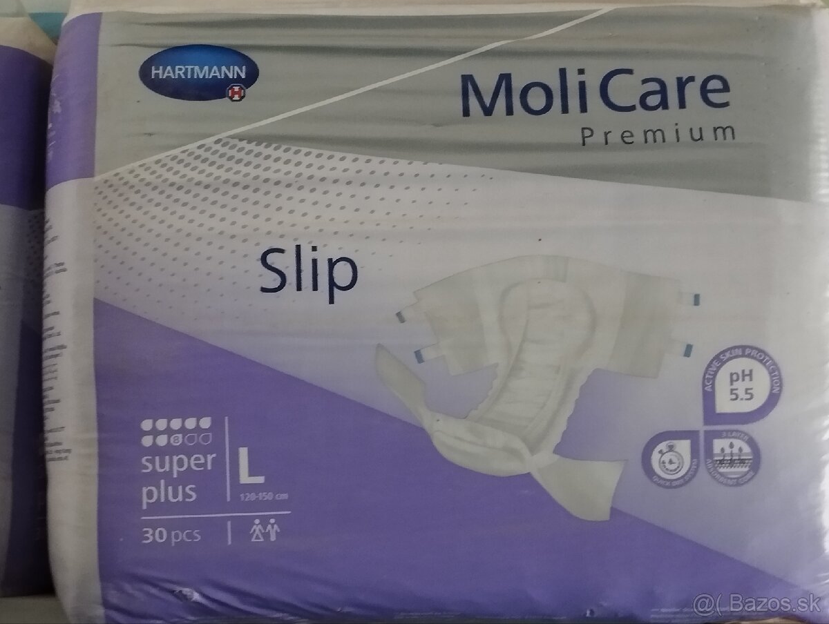 Plienky MoliCare Slip Super Plus 8 - [26.2. 2026]Predám 4 balenia (10€ za balenie 30 kusové)MoliCare Slip Super Plus 8 kvapiek L inkontinenčné nohavičky zalepovacie (120-150cm) 30ks