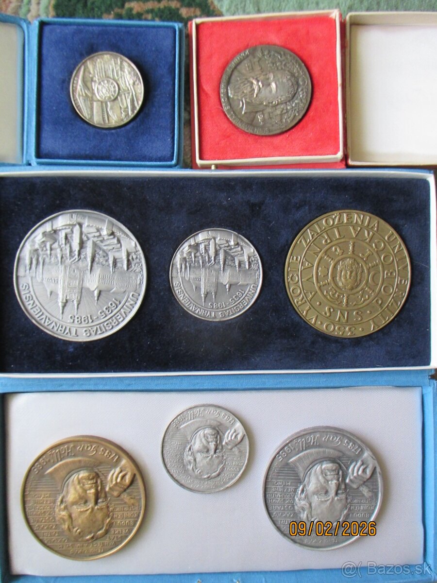 Predám rôzne medaile : 3 rôzne Universitas Tyrnaviensis,3xJán Hollý,750 rokov Trnavy,Johannes Sambuctus Tyrnaviensis