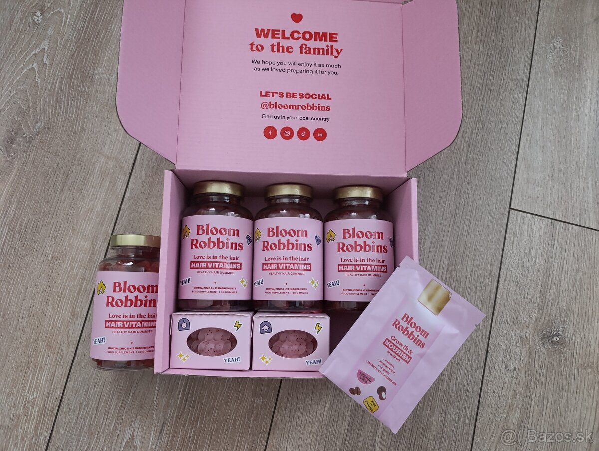 Predám 4 neotvorené balenia vitamínov na vlasy Bloom Robbins. K tomu pridám vzorku šampónu a 2 balenia gumičiek do vlasov. Všetko spolu za 40 eur