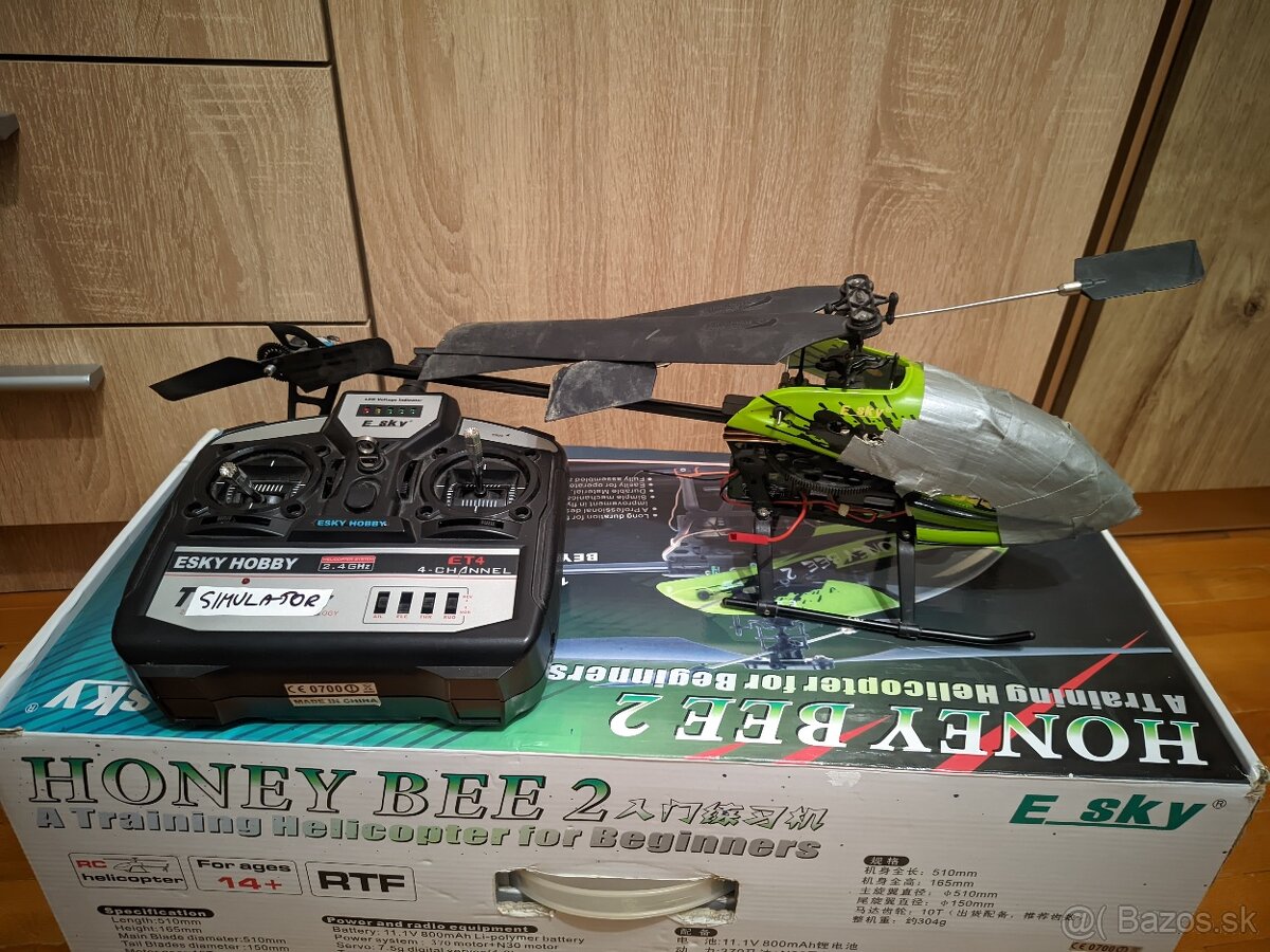 Predám RC vrtuľník Esky Honey Bee V2, asi rok nelietaný, buď opraviť alebo na náhradné diely, chýbajú tiahla rotorovej hlavy, vysielač nefunguje ale dá sa použiť na simulátor, prijímač prerobený na FrSky, k tomu kopa náhradných dielov (niektoré kovové Xtreme), nabíjačka a baterka.