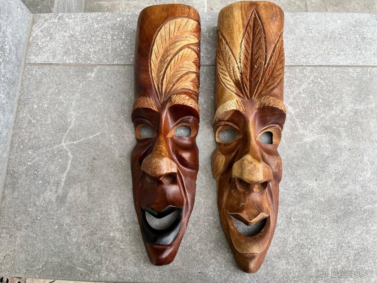 Predám 2 masky z Kuby, ručne vyrezávané z dreva. Možnosť zavesiť na stenu, alebo kdekoľvek ako dekorácia do obytného priestoru.