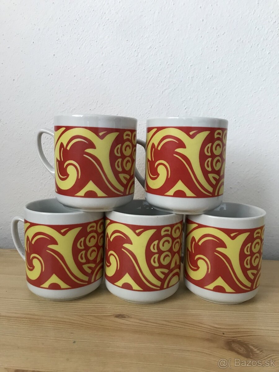 Sada piatich retro hrncekov, nepouzivane, bez poskodenia.