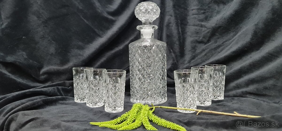 Ponúkam na predaj sadu na whisky, jeden pohár má výrobnú vadu ( posledná fotka) karafa výška 19 cm, poháre výška 8,5 cm priemer 5 cm, cena spolu 40 € + poštovné alebo osobný odber v KE