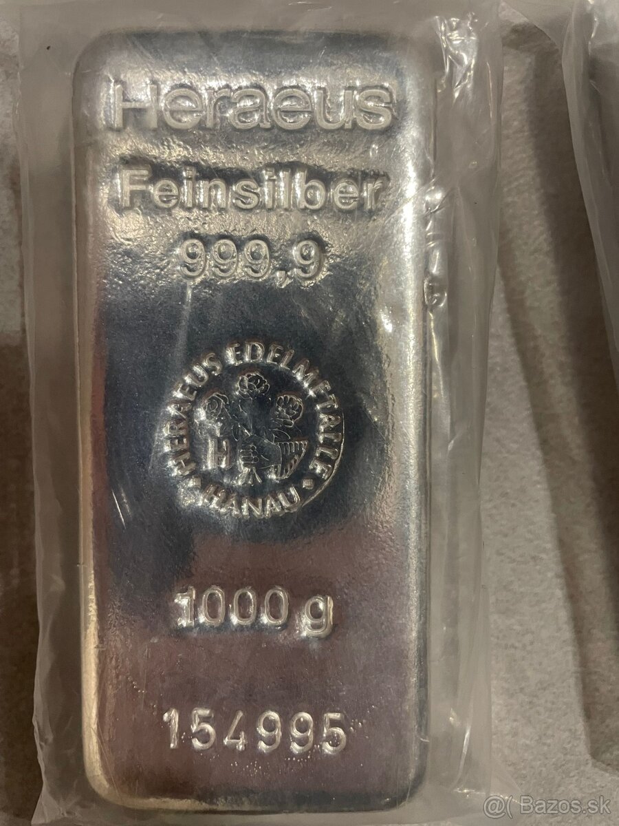 Ponukam na predaj investičné striebro HERAUES 1000g 999.9Ag Tehlička v ochrannom obale. K dispozicii viac kusov, pri odbere 10Kg možná zľava. osobný odber na trase VK-BA alebo VK-BB... Možnosť odoslania po prevode!