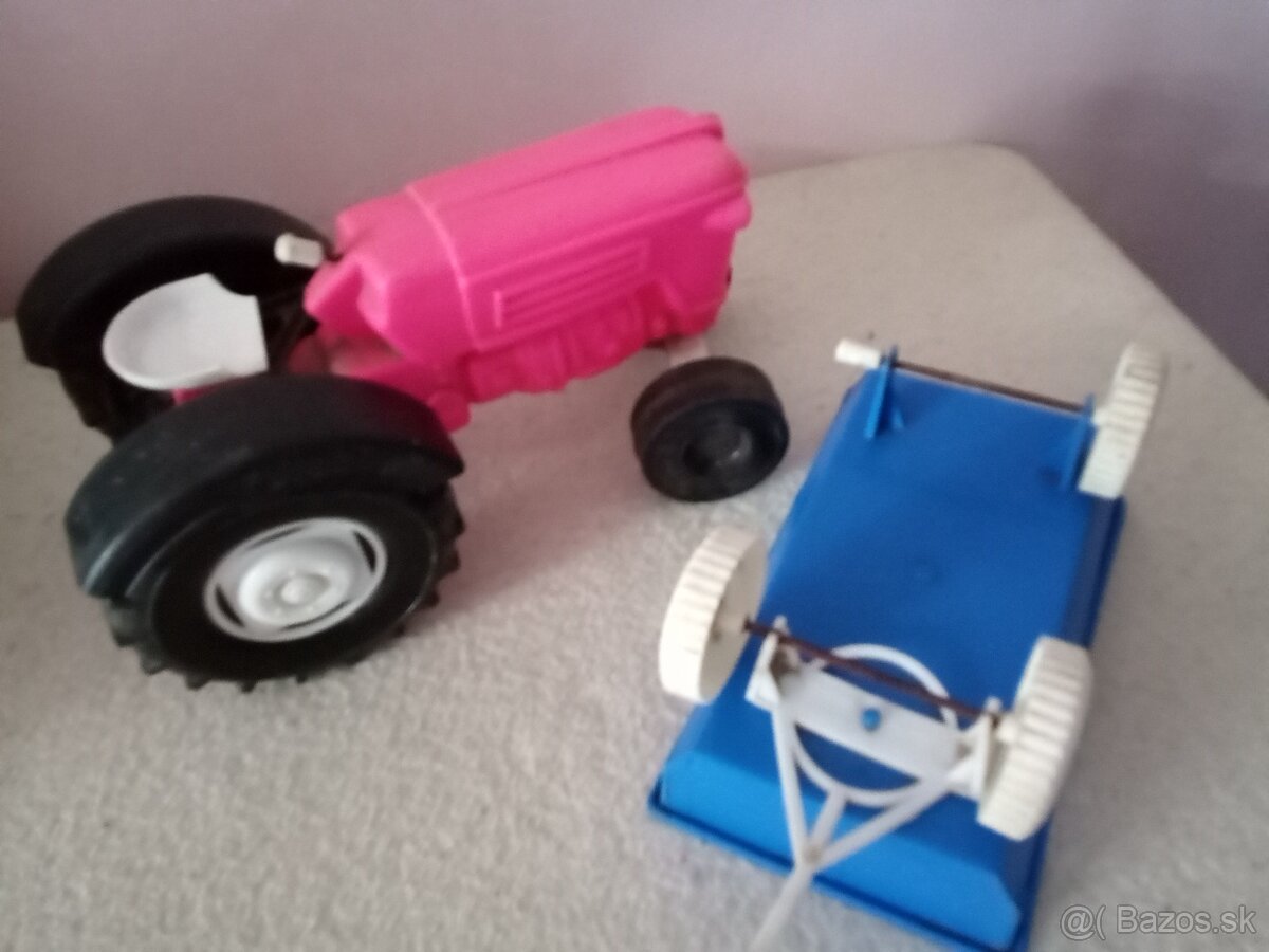 Ponúkam na predaj umelohmotný retro traktor avšak chýba volant. Taktiež jednu vlečku za traktor, kde chýba jedno koleso - hračky nepatria k sebe!