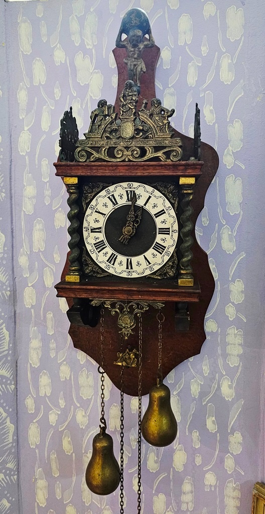 Frisse Holandské hodiny - TOP - [19.1. 2026]Ponúkam Holandské Frisse hodiny s mosadznymi soškami a jeden drží zemegulu Atlas a pozadie krásne Holadske zatišie , este je tam mesiac ktory sa pohybuje keď je spln mesiaca ,hodiny bijú na pól a celú sú funkčne mechanika prekotrolovana !su dvoj zavažove velmi zachovalom stave a všetko je oryginalne ...