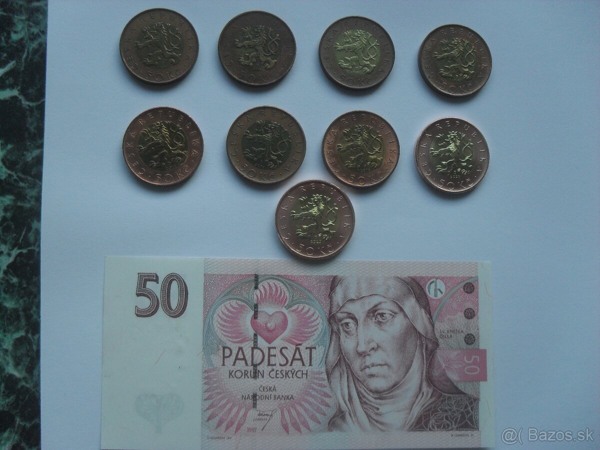 Padesátikoruna, Oběžné mince, sada mincí, numisnatika,