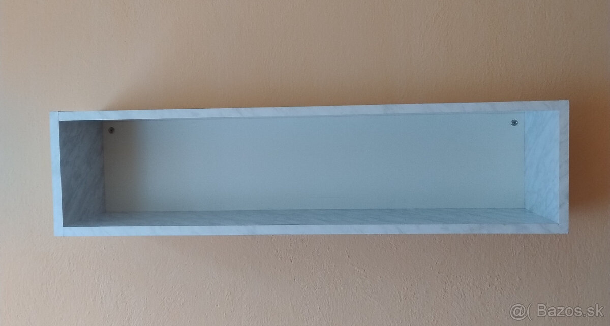 Polička na stenu š: 100cm, v: 25cm, h: 20cm. Vzadu vystuženie na uchytenie na stenu. Stav na foto, bez poškodenia.