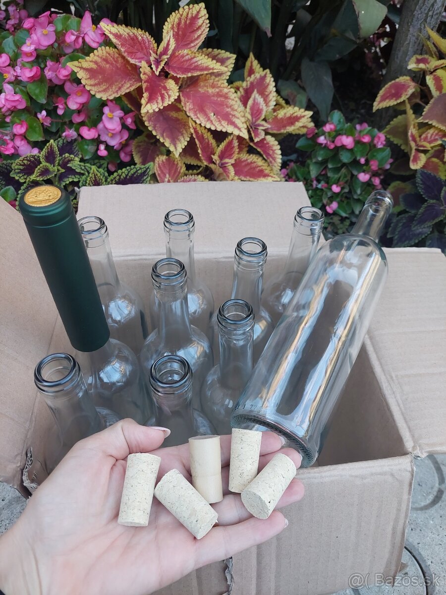 # 0,75l flaša na víno s korkom a uzáverom za 0,70E/ks - dostupné 10ks