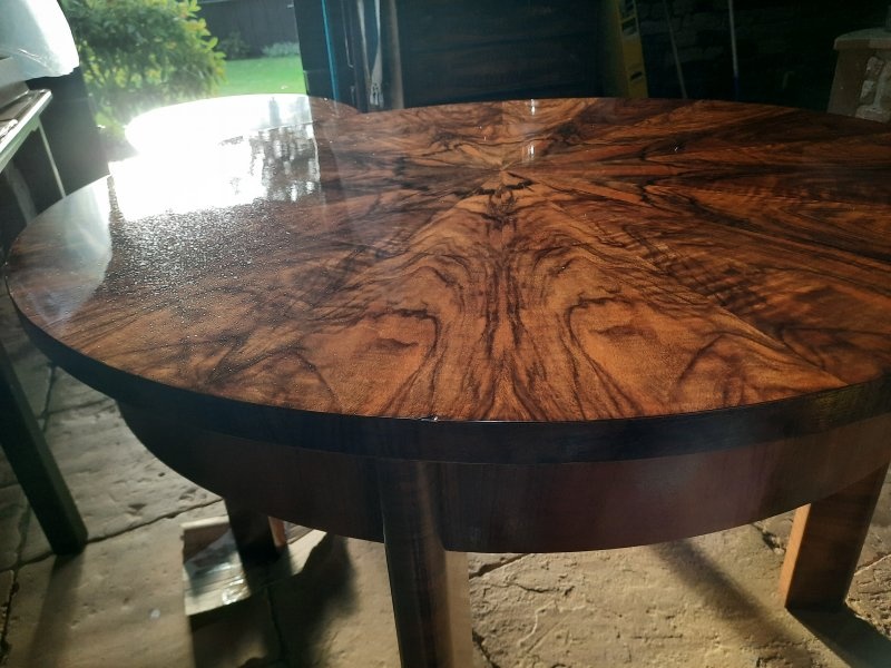 1 ks kruhový jedálenský stôl (pevný, priemer 115 cm), s nadhernou dyhou.