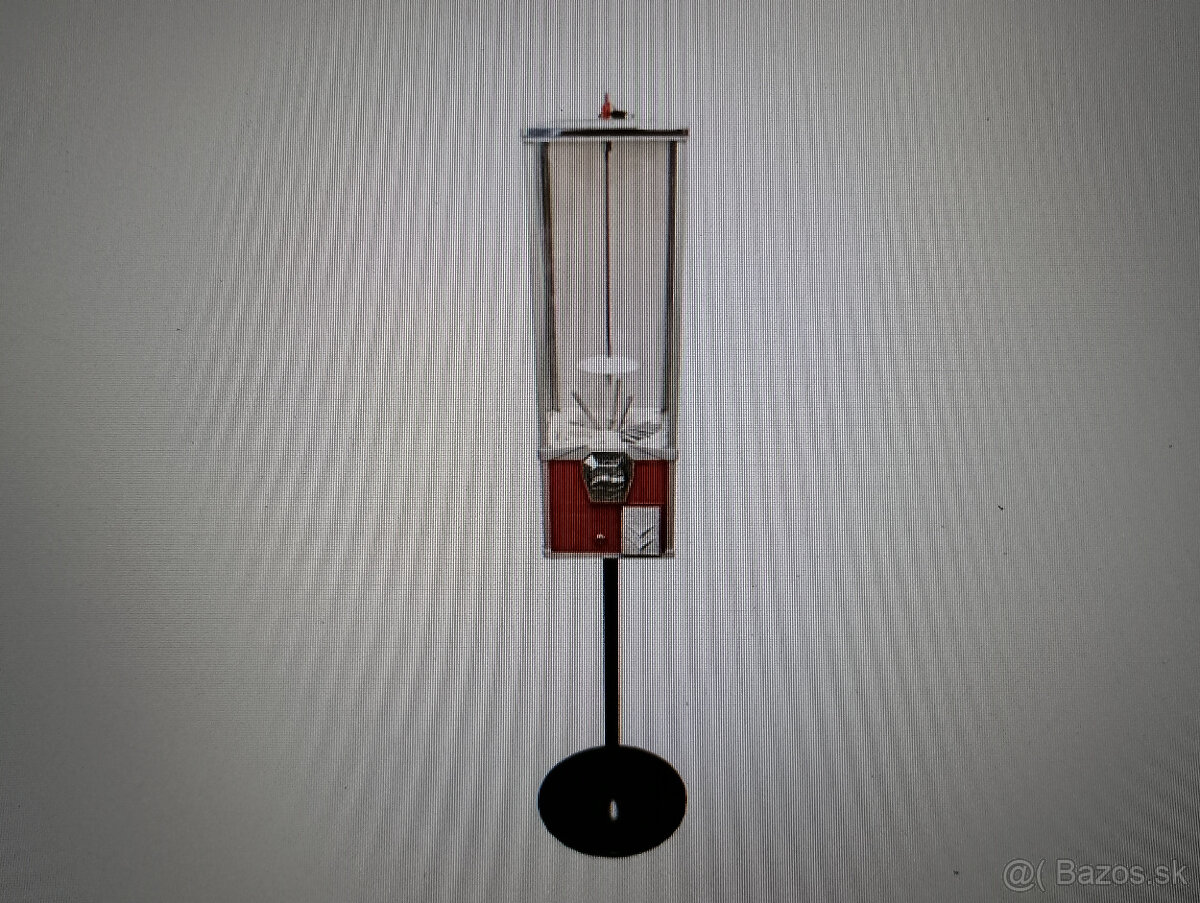 Kupim mechanicky automat na plastove kapsule.Najlepsie zo stojanom,ale to nieje podmienka.Pre výdaj kapsúl s priemerom 45 až 65 mm.Potrebujem to aby to davalo plastovu kapsulu 50 mm.Mechanicky mincovnik na 0,50eur.Nieco podobne ako na obrazku.