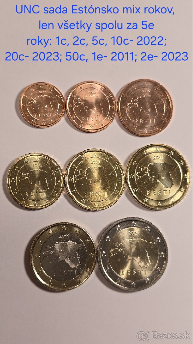 Predám UNC euromince Estónska rôznych ročníkov priamo z bankových roliek. Len všetky spolu za 5e, nepredávam po kuse. Mám už iba posledných 9 setov.