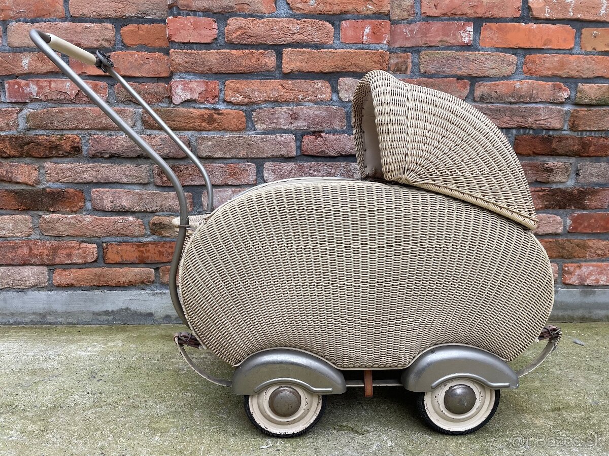 Predám starožitný ratanový prútený kočár pre bábiky. Vhodný ako dekorácia alebo na hranie pre deti. Kvalitný v dobrom stave . Dve bábiky sú súčasťou.