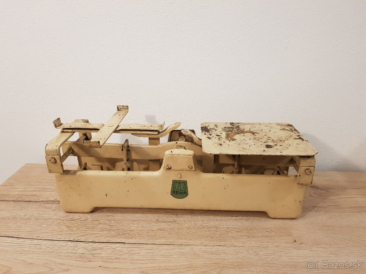 Starožitné mechanické váhy v pôvodnom stave, ideálne pre zberateľa alebo ako základ na renováciu.