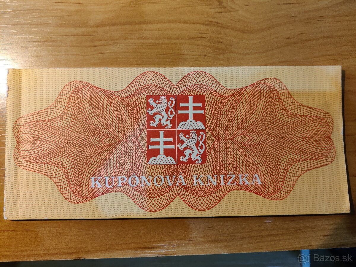 Ponúkam originál kuponovú knižku, zarigistrovanú, aj s 1000 korunovou známkou. Bonus symbolický Europas, vydaný pred vstupom Slovenska do EU. Cena 8€.