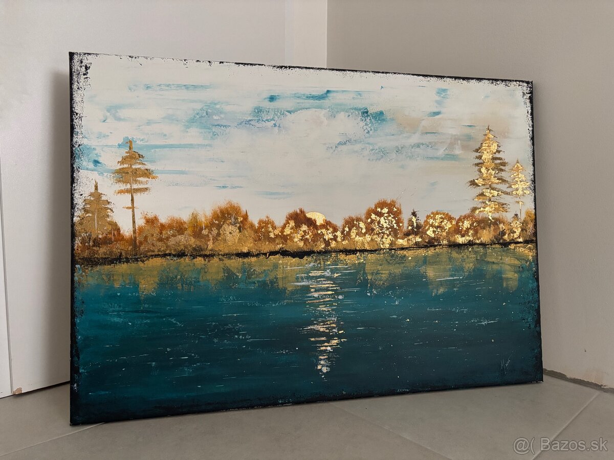 Obraz rozmer 70x100cm krajinka abstrakt so zlatou foliou
