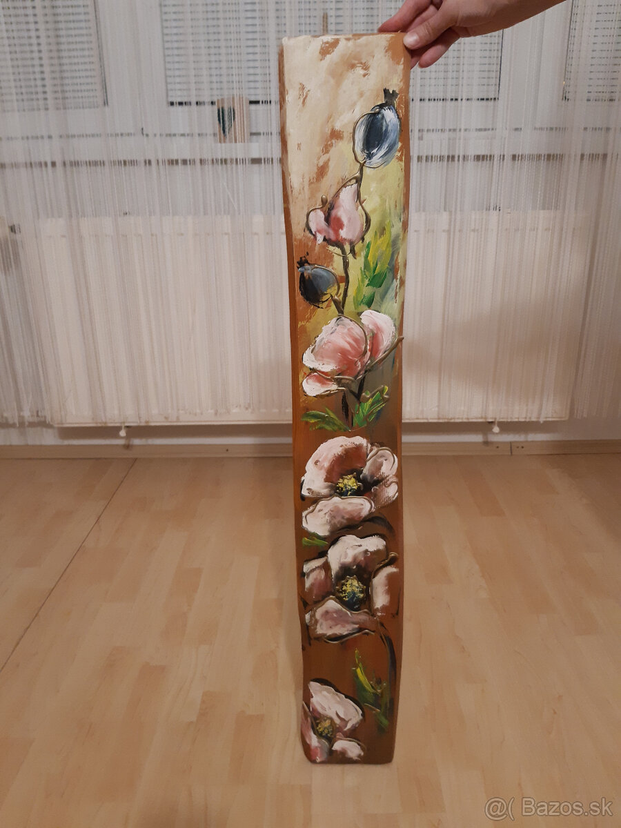 Predám ozdobný dekoračný obraz kvetov. Technika je kombinovaná - maľba a reliéfne (trojrozmerne) nanesená hmota (farbená na zlato).