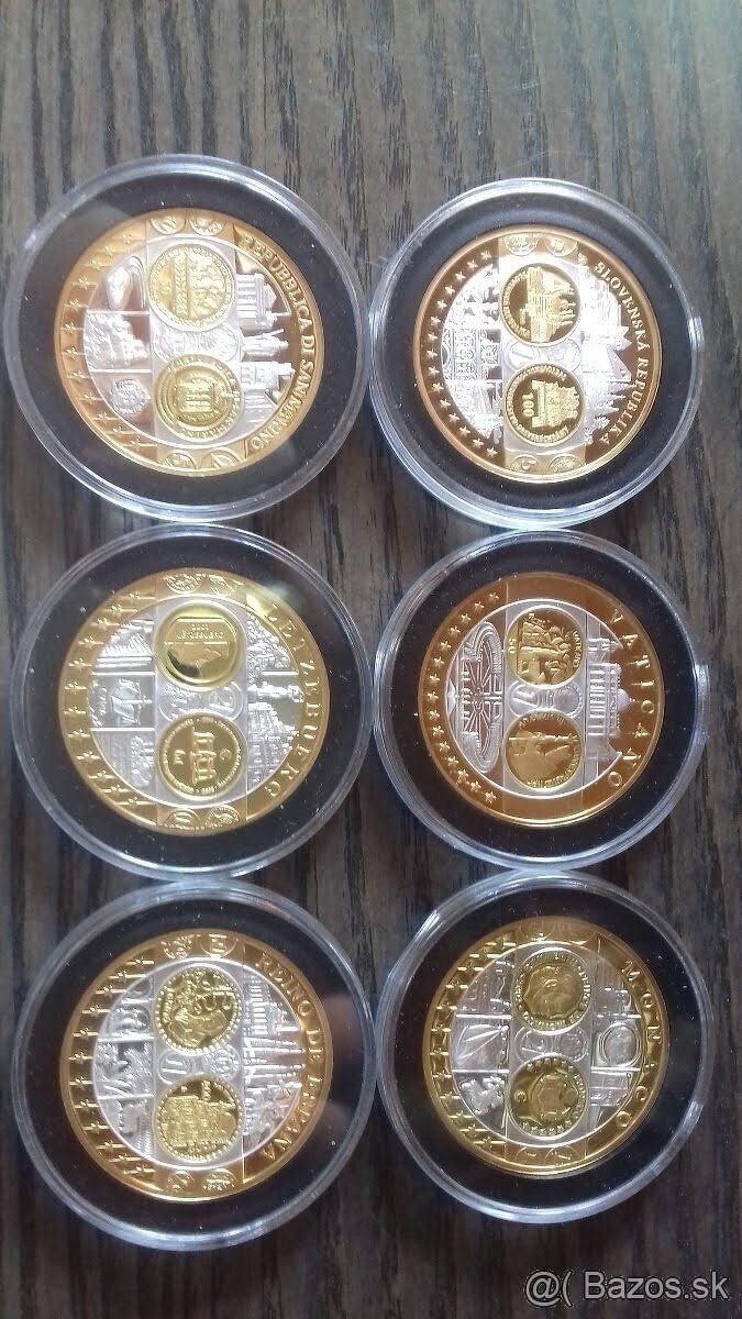 Ponúkam na predaj tieto Euromedaile orig.v kapsule aj s certifikátom..mám posledné 4 ks,Monako,San Marino,Luxembursko a Španielsko..medaile sú plánované 24k zlatom a čistým striebrom..