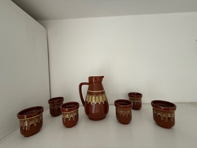 Čierny krčah s poharikmi na pitie súprava ľudová - [10.2. 2026]Predám čierny krčah s pohárikmi na pitie súprava 1 krčah a 6 pohárikov ľudová keramika, výška krčahu je 21,5cm výška pohárika je 5cm vo výbornom stave. Cena je 30 eur + poštovné, posielam dobre zabalené. Kontakt cez email.