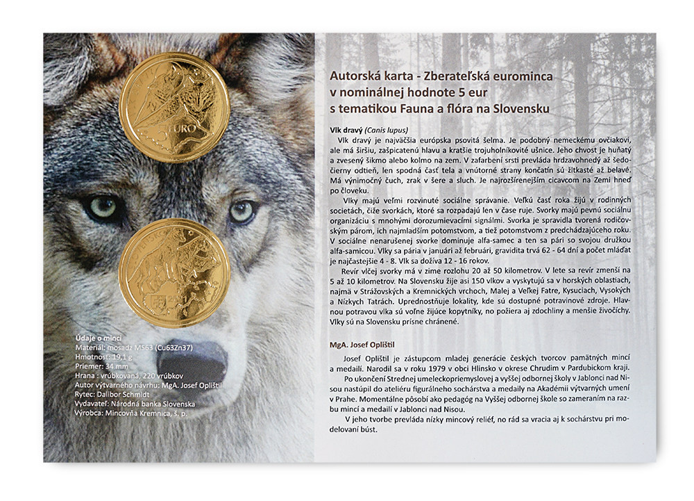 Ponúkam pamätný list k zberateľskej slovenskej 5€ minci 2021 - Vlk dravý.