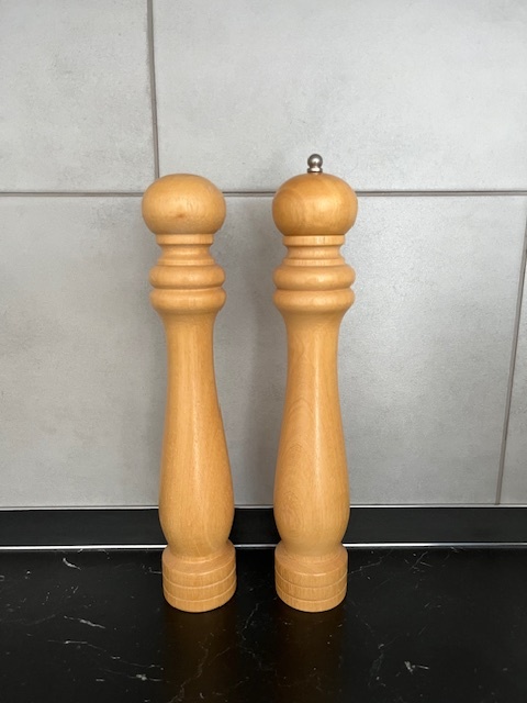 Predam supravu - drevena solnicka a korenicka (mlyncek na korenie). Plnenie zospodu a zvrchu. Vyska 32 cm. Uplne nove - nepouzivane.