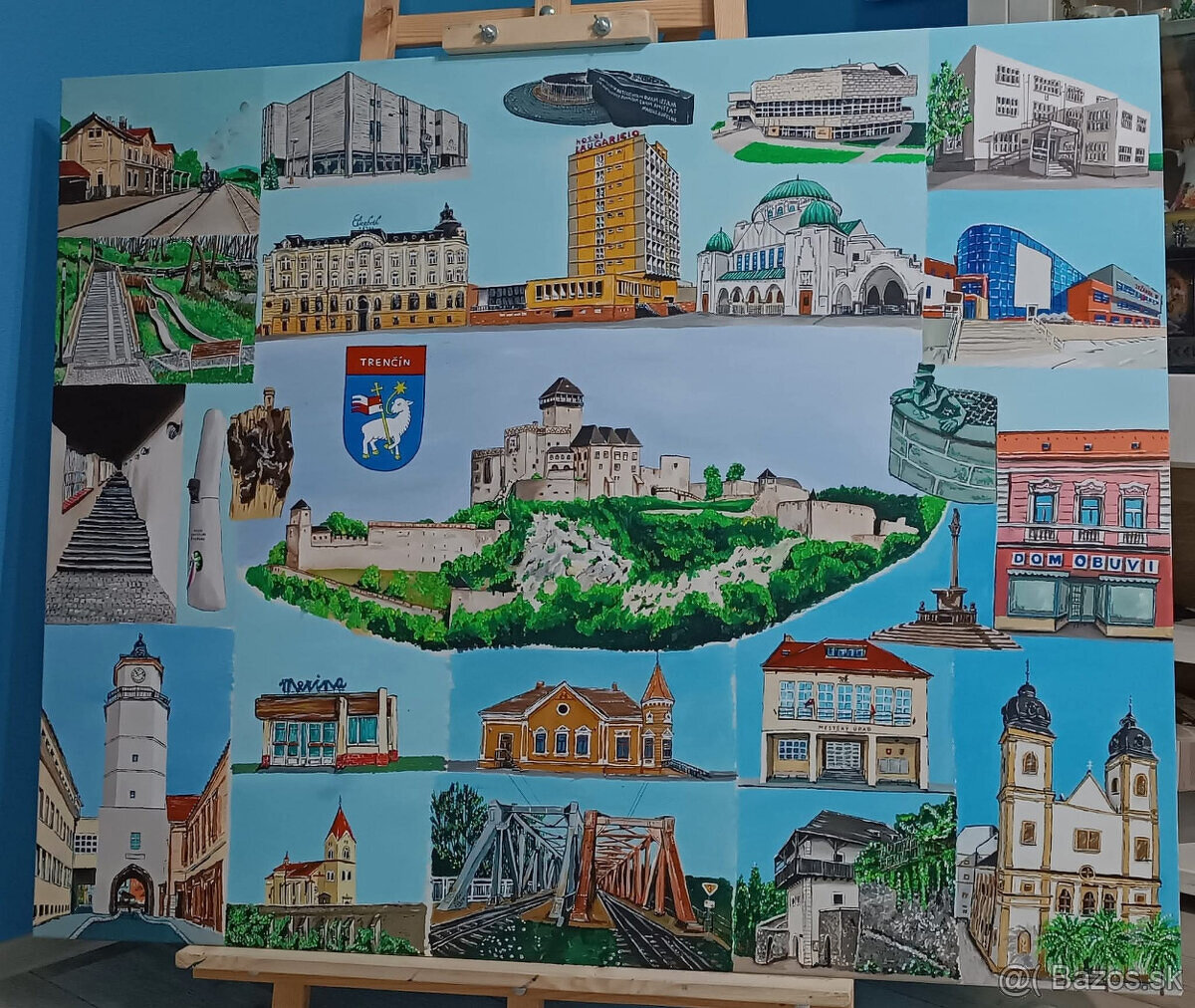 Mám na predaj mnou maľovaný obraz kúty Trenčína v rozmeroch 120x150. Maľovaný acrylom .