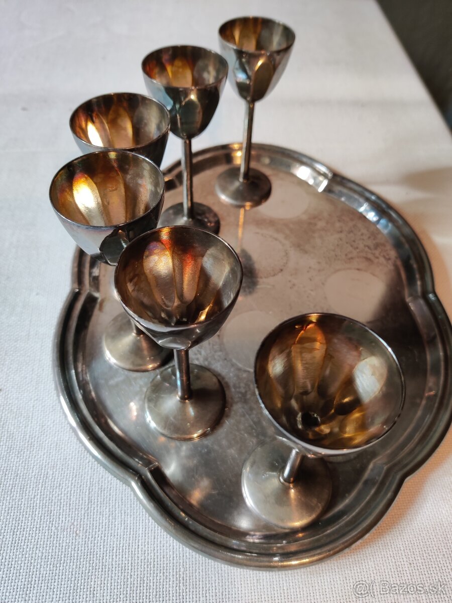 Alpakova sada šiestich pohárov s táckou. Cena 20€.