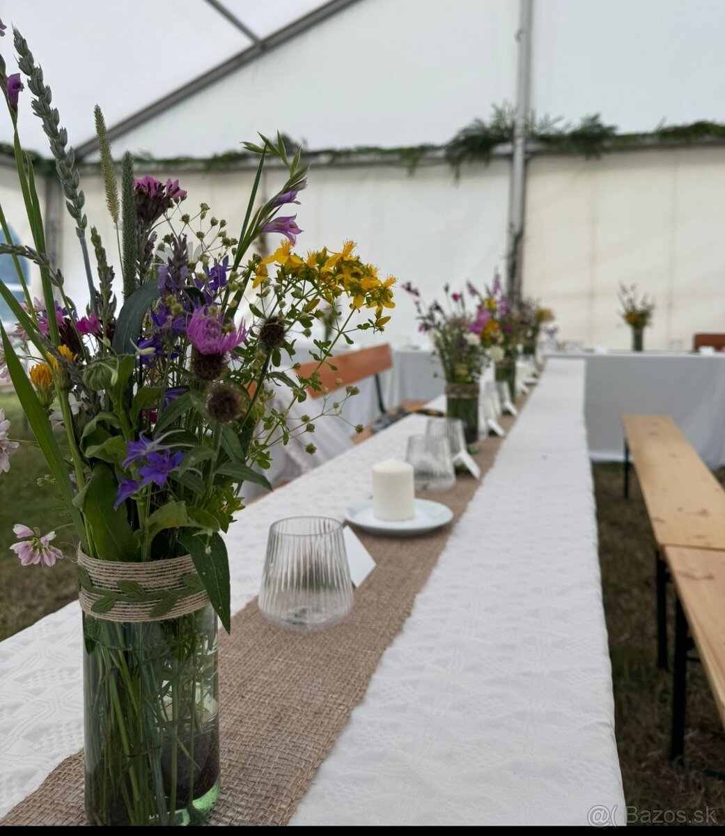 Mali sme ich na lúčnej svadbe, vázy sú upcyclované.