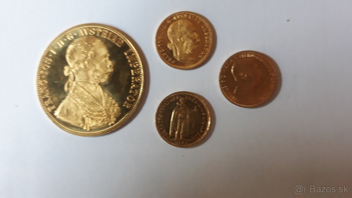 Predám zlatý štvor dukát .986 13,96g,zlato 13,72g cena 1950 €.T.č.0908 749 866 Ba. male z obrázku niesu.