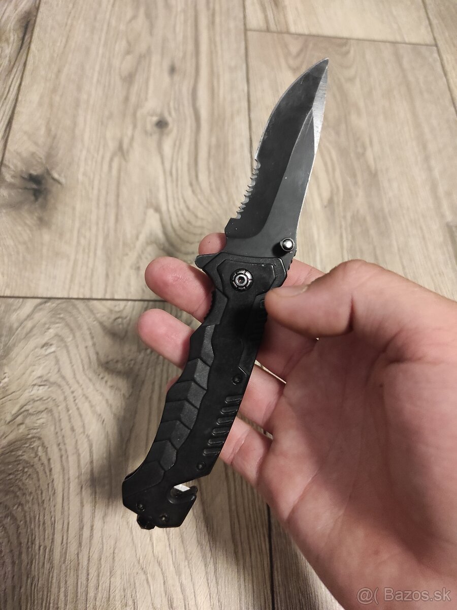 Predám vreckový nôž ( s nepoškodeným puzdrom) nôž o celkovej dĺžke 20 cm. Dĺžka čepele je cca 7,5 CM ( na čepeli je malá ,pílka') obsahuje aj druhú malú čepeľ na rezanie rôznych špagátov drôtov a podobne a malý hrot na spodku.