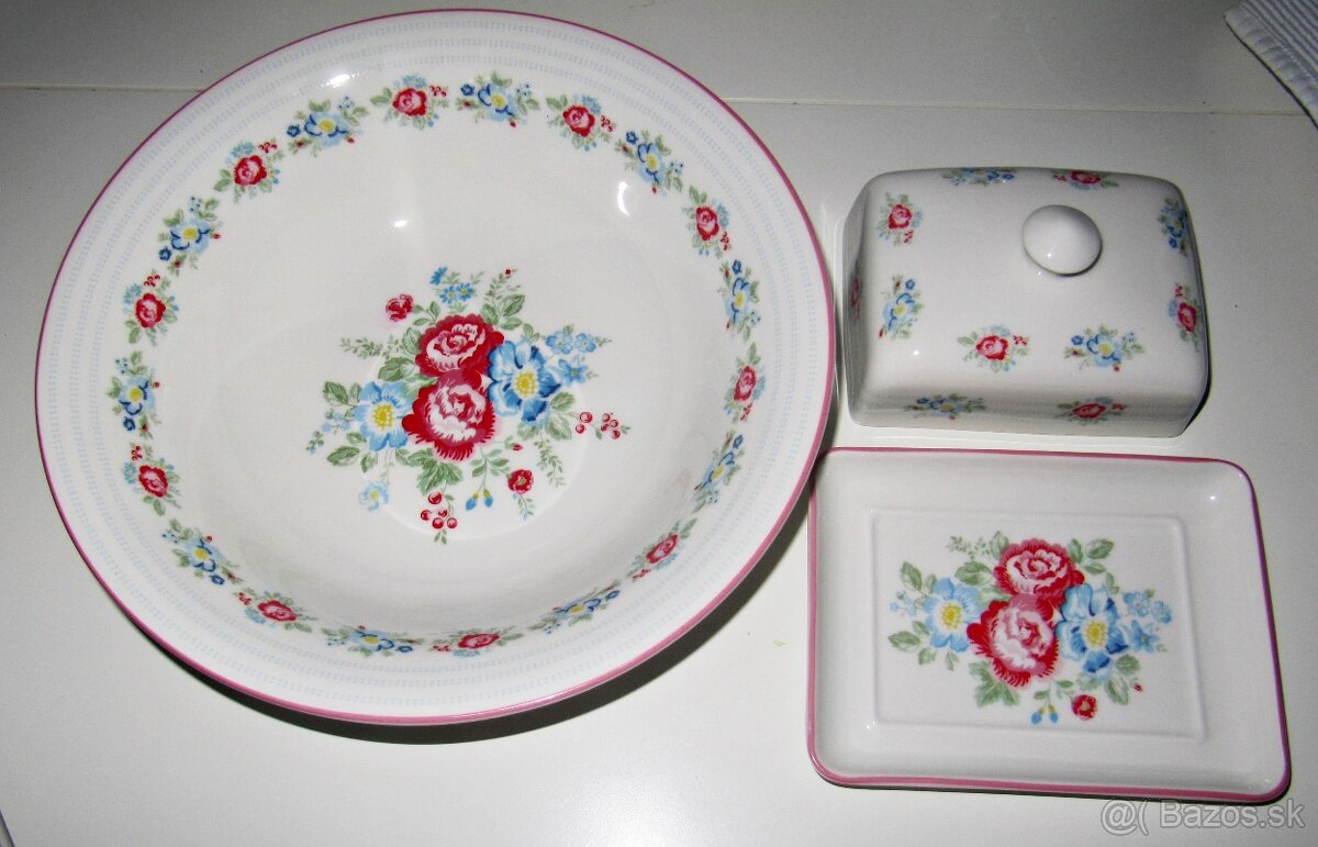 Mám na predaj aj maselničku Green Gate z tej istej kolekcie. Cena maselničky je 66 eur. Je to staršia limitovaná kolekcia, ktorá sa už nevyrába. Dlhá je 15,5 cm. Osobný odber v Nitre alebo platba vopred. Balík posielam ako POZOR SKLO. Poštovné je 4 eur. Osobný odber by bol najlepší. Nevolať, píšte prosím na e-mail.