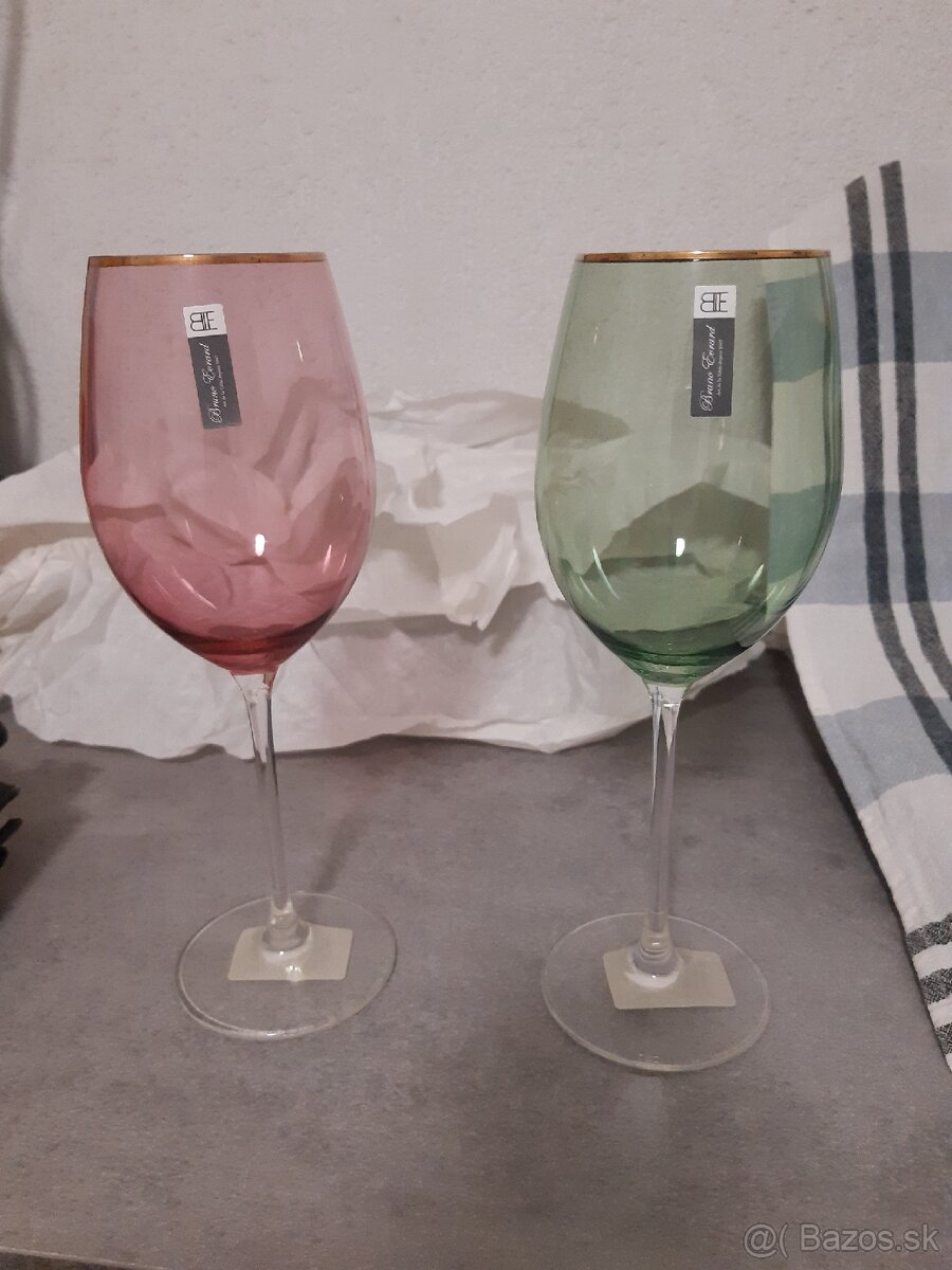 Predám sklenené poháre na víno z brusnicového skla - [9.2. 2026]Predám sklenené poháre na víno z brúseného brusnicového skla, celá súprava 6 kusov. Výška pohárov 13cm. Cena za kompletnú sadu 35€.