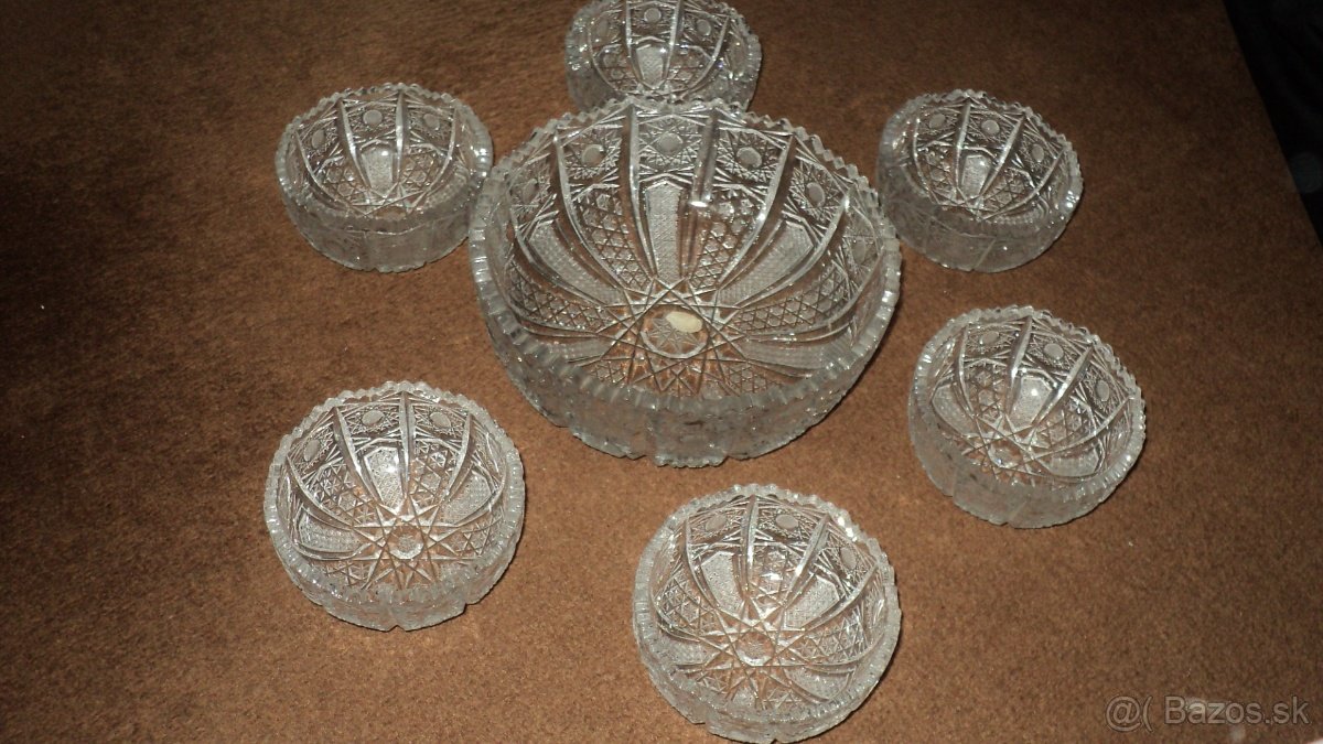Sada obsahuje poháre, misky a vázu z kvalitného brúseného krištáľu s originálnymi štítkami. Sklo je bez poškodenia, vhodné na bežné používanie aj ako dekorácia alebo darček.