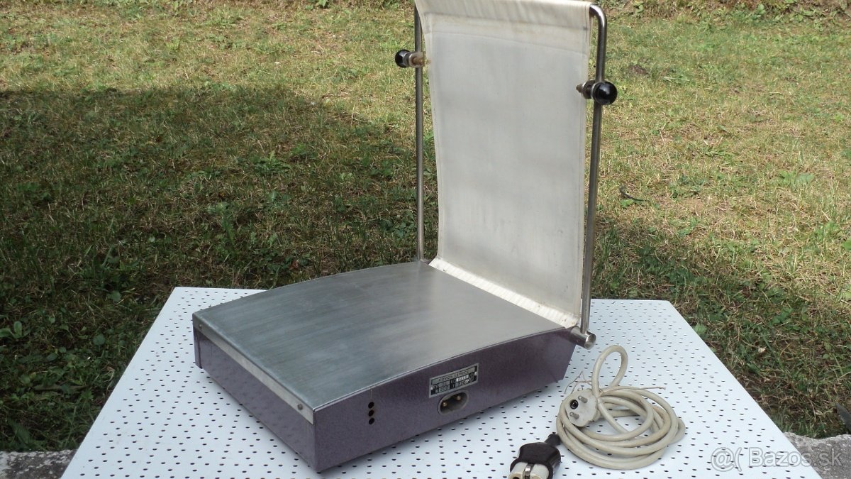 1, Foto žehlička na fotografie s káblom,funkčná,chýba blana /plech / na lesklé fotografie.Výrobca:KOVOS Teplice.Cena 10 €.