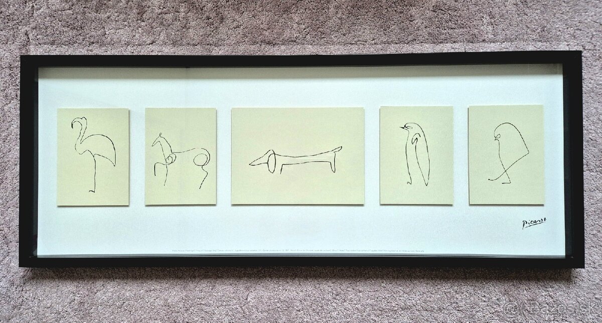 predám vzácny obraz IKEA OLUNDA - Pablo Picasso zo stvárnením piatich zvierat: "Flamingo", Pinguin", "Sausage Dog", "Chic" a "Horse".