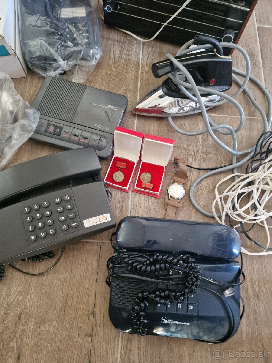 Predám starožitnosti na fotkách, okrem hodiniek Prim - predané. Na predaj je: staré pevné linky , staré rádio (zrejme nefunkčné), budík alebo čo to je, stará žehlička, socialistické odznaky, stará taška stále funkčná. Zberateľovi sa to možno zíde. Ideálne všetko spolu, vtedy sa na cene určite dohodneme. Je to nálezový stav, starká to roky mala odložené v skrini, tak som ju toho zbavil a peniaze z predaja dám jej.