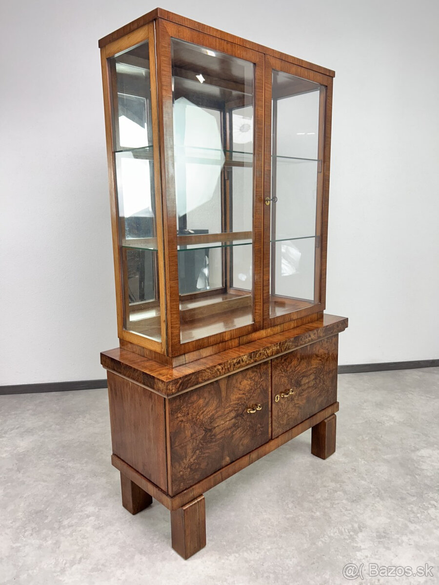 Art deco orechová vitrína 1930