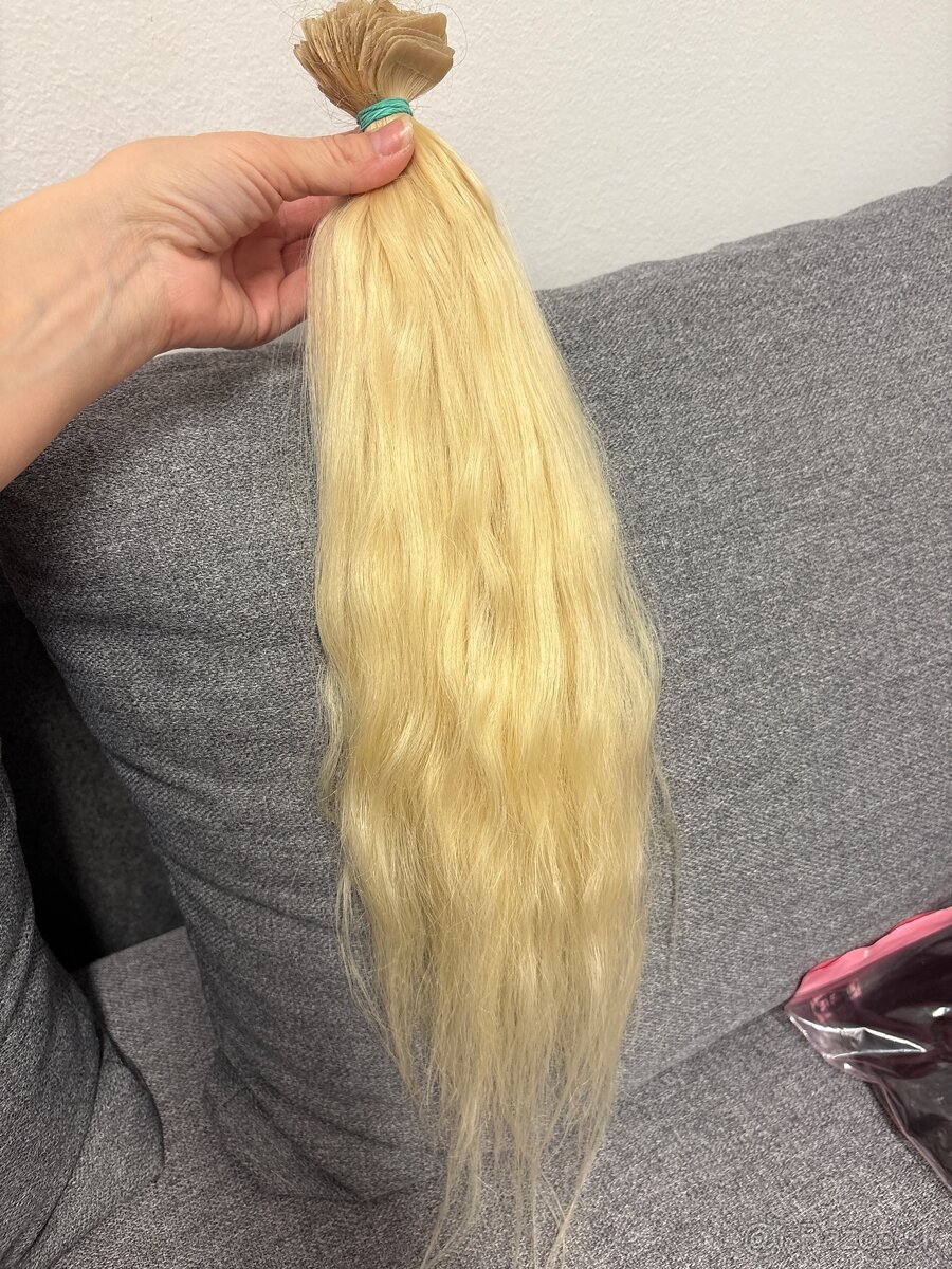 LUDSKE VLASY 100% KERATIN 50cm 50g - [10.2. 2026]Predam vlasky 100% ludske Europskeho povodu. Su nepouzite!! Prerobene na keratin zakoncenie ( taliansky keratin)