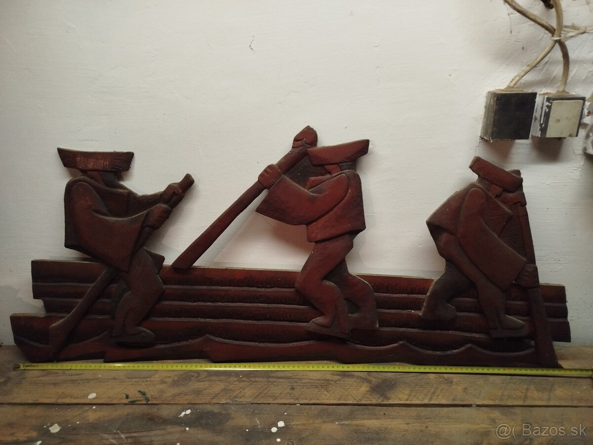 Veľká historická drevorezba-PLTNÍCI ručná práca cca 1930-1960.material masívne drevo pravdepodobne lipa.stav veľmi dobrý pôvodná patina bez zásadných poškodení.rozmer 110cmx50cm.vhodné pre zberateľa, galériu,štýlovú chatu, reštauráciu alebo historický interiér