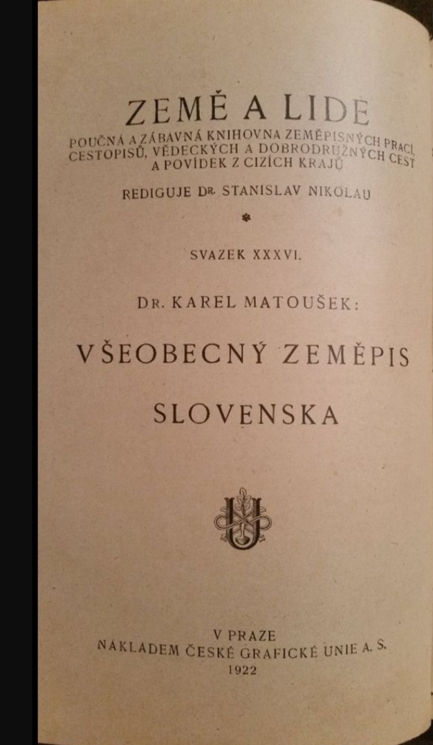 VŠEOBECNÝ ZEMĚPIS SLOVENSKA 1922
