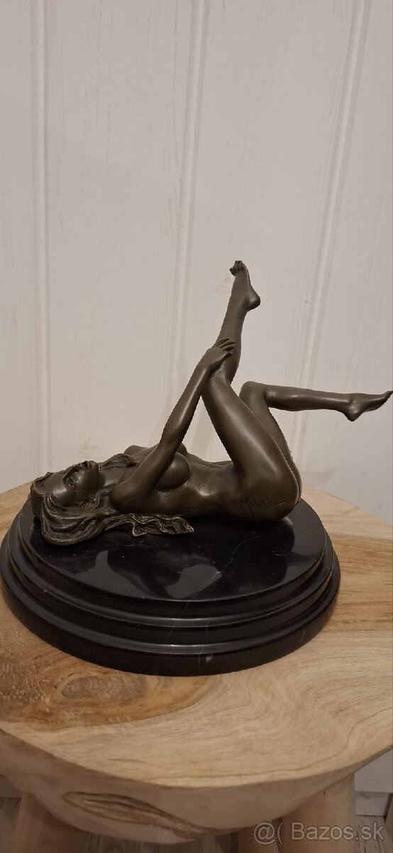 Predam sosku z bronzu na mramorovom podstavci, akt zeny s podpisom umelca a peciatkou kvality a pravosti.