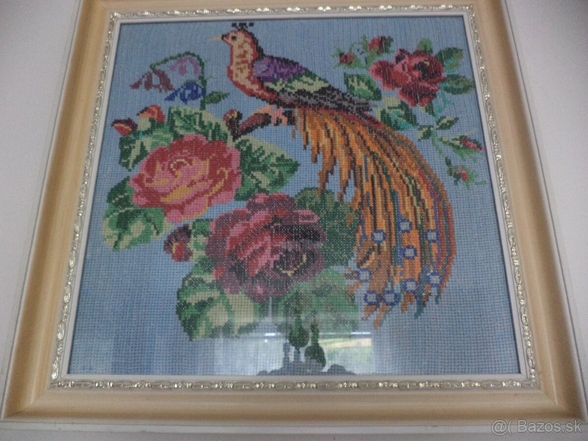 Predám ručne vyšívaný obraz v krémovom ozdobnom ráme, motív páv. Rozmer 57x57cm. Doveziem v rámci Bratislavy. Pozrite aj ďalšie moje inzeráty