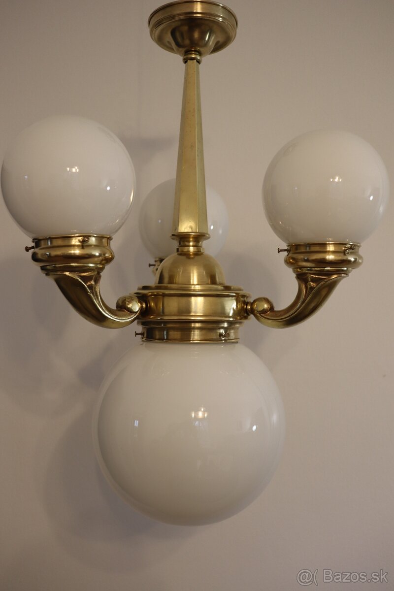 Starožitný luster - [23.1. 2026]Starožitný mosadzný luster,trojramenný,vyčistený,nová kabeláž,pôvodné sklá