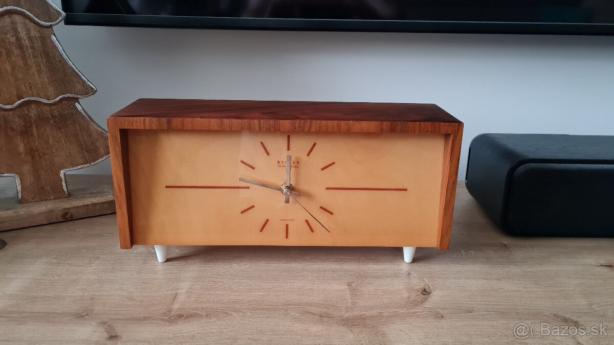 na predaj retro komodové hodiny Weimar vo veľmi peknom zachovalom stave, s novým tichým quartz bezkrokovým mechanizmom. Presné, bezúdržbové, na 1ks AA batérie