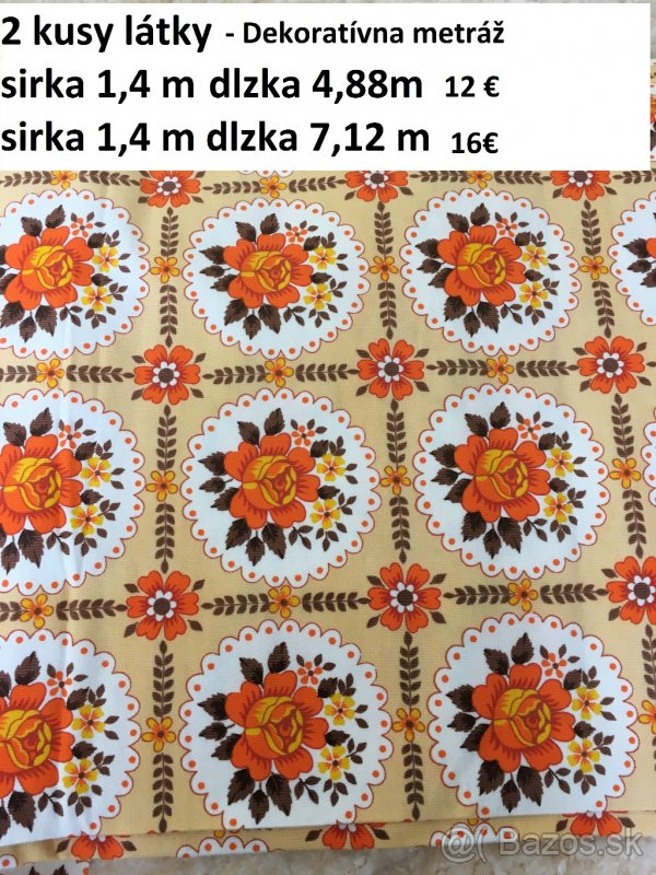 Predám metráže látky,látku na posteľné obliečky, látku na vyšívaný obrus rozmery a cena priamo na obrázku